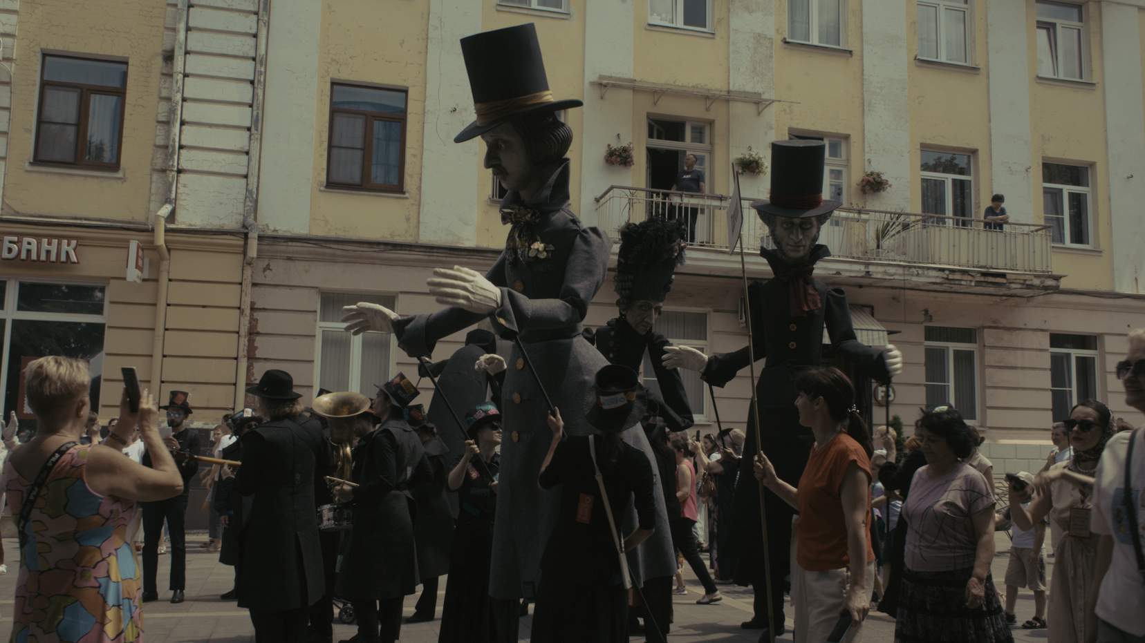 Лучший неигровой фильм «Окна в Европу» (хотя жюри выбрали монохромную короткометражку про отважных ветеринаров из Красноярска и с нами не согласились бы). «Великанцев» снял Юрий Мокиенко — выпускник Александра Сокурова и автор документальной комедии «Отцы» (2023), которая стала большим событием в российском кино два года назад. На этот раз молодой режиссёр снова создаёт живой фильм-портрет героев-творцов: на экране — закулисье петербургского театра КУКФО [петербургский театр, предлагающий как детские, так и взрослые спектакли в кукольном формате — прим.ред.] и весёлый процесс создания гигантских кукол русских писателей. Пушкин, Достоевский и Гоголь, благодаря деревянному скелету и папье-маше, оживают и отправляются в путешествие по городам России, а режиссёр — с любовью к своим героям и нескрываемой иронией — играюче наблюдает за громадными, в три человеческих роста, куклами, заставляя их плясать под равелевское «Болеро».